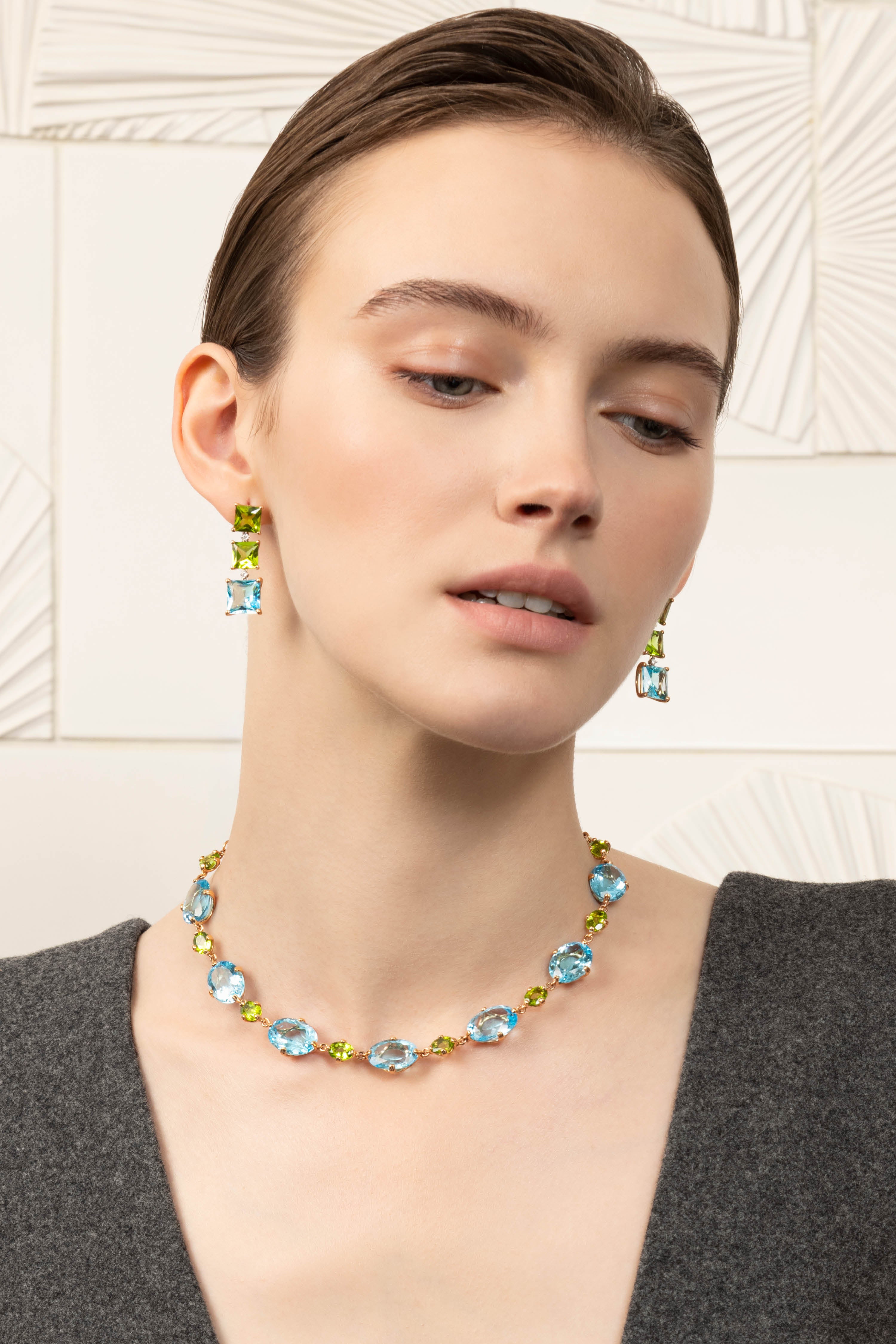 Gocce di gemme cadono nell’acqua creando un arcobaleno da indossare. Aqua collection si fonde con la natura fluida delle emozioni e della bellezza, per creare gioielli che incantano lo sguardo come una fiaba.